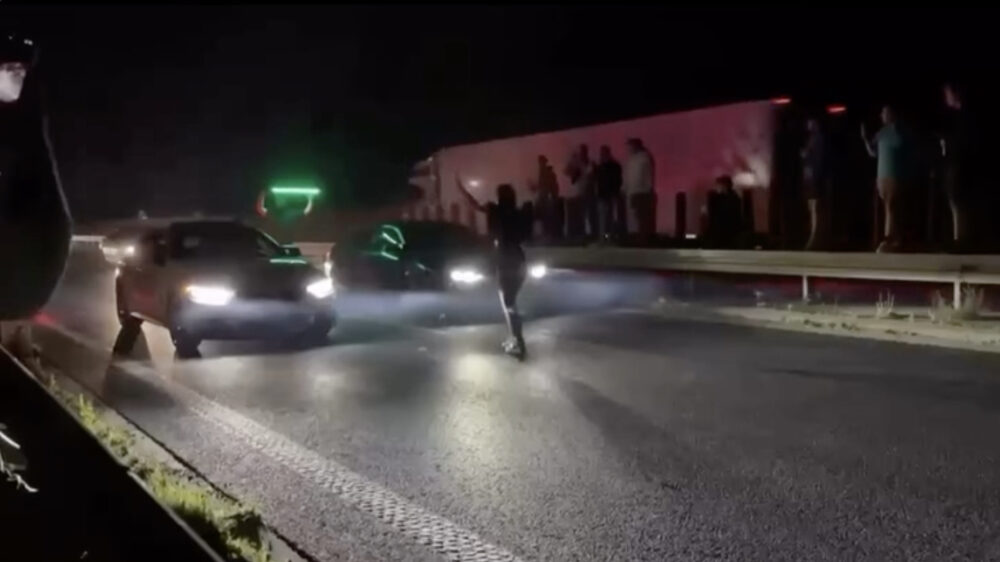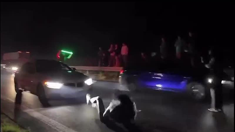 Vrouw geeft voor het eerst het startsein van een straatrace